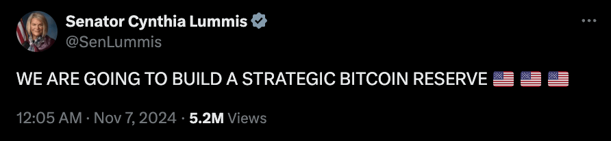 إذا لم تكن تعلم، فإن الاحتياطي الاستراتيجي من البيتكوين في الولايات المتحدة هو مبادرة طرحتها السناتور سينثيا لوميس: