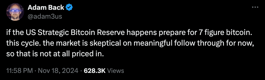 في أحدث منشوراته، حذر Adam المستثمرين من الاستعداد لـ Bitcoin المكون من سبعة أرقام: